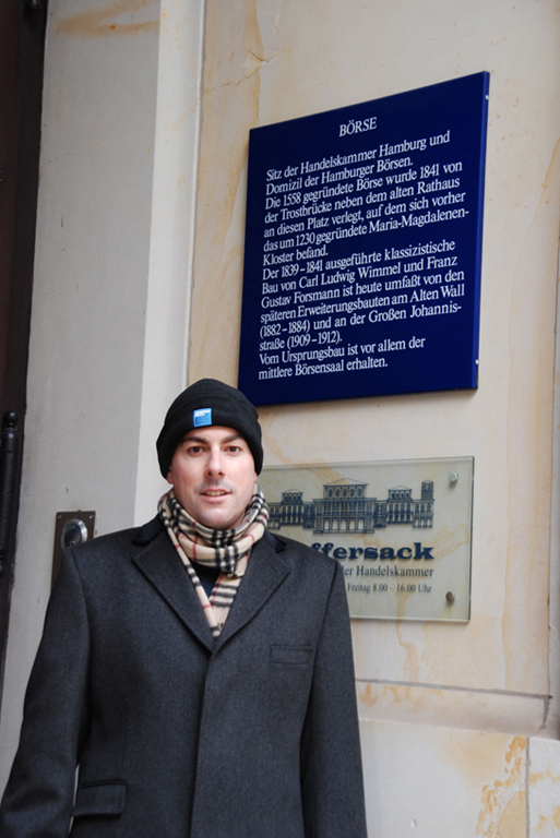Ivo in front of the Börse in Hamburg, Germany