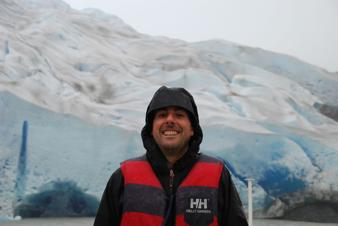 Ivo in front of Grey Glacier, Torres del Paine, Chile